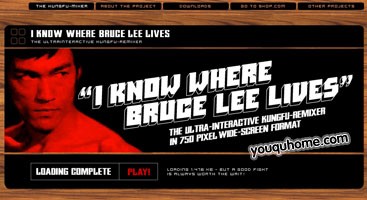 啊哒。。。李小龙来了,今天的网站有意思极了,网站有一个名为I Know Where Bruce Lee Lives的flash,将李小龙经典电影片段剪辑出来,分别对应设置到键盘上,当你按键盘时,会出现相应的片段,给人一种自己就是李小龙的感觉,大家一起随我一边啊达。。一边按键盘吧。。。