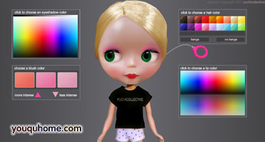 儿童网站-在线芭芘娃娃化妆 898 ℃ 1条回复 ←已有4 人投票,有趣指数: 2.50星 Loading...今天关心一下小朋友,介绍一个你们喜欢的网站。这个网站是一个芭芘娃娃生产厂商制作的,提供了一个在线为芭芘娃娃化妆的游戏,仿真度很高,化出来的装也很漂亮,快去玩吧~!老爷们儿止步,谢谢合作~!传送门 http://www.puchicollective.com/blythealizer/ 已挂相关趣站山寨也疯狂-国产美丽试妆间在线置换你的面部、发型-hairmixer在线为自己美容化妆-taaz谁先眨眼谁就输-stranger video各国国旗猜猜猜-Flag Finder Game