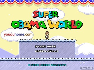 今天轻松一下,给大家介绍一款小游戏,名叫Super Obama World,模仿的是大名鼎鼎的超级玛丽,游戏以美国历史上第一任黑人总统奥巴马为主角,内容好像暗讽政治人物和政治现实,不知道最后一关是不是白宫。游戏的作者还表示,今后还会将一些关于奥巴马的新事件加入到游戏里。。。名人啊。。。
