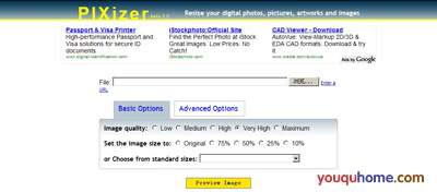 此网站属专业网站,一般人用不上,比较适合站长、平面设计、网页设计使用,但这个网站使用起来就非常简单了,主要功能就是在不损伤图片质量的情况下将图片体积缩小,专业术语叫无损图片压缩。支持GIF、JPG、PNG图片格式,同时还可以调整图片大小,并提供旋转、增加亮度、边框等等效果的设置。收藏起来,我保证,一定有那么一天你会用到它。。。