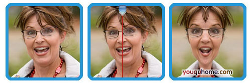实在想不出什么好标题了,因为这个网站用在线翻译就叫“劈图网”,看名字就知道了,将图片一分为二,然后各自复制一个镜像组成一个新的图片,而这个新生成的图往往都出人意料的搞笑,有点哈哈镜的感觉~!